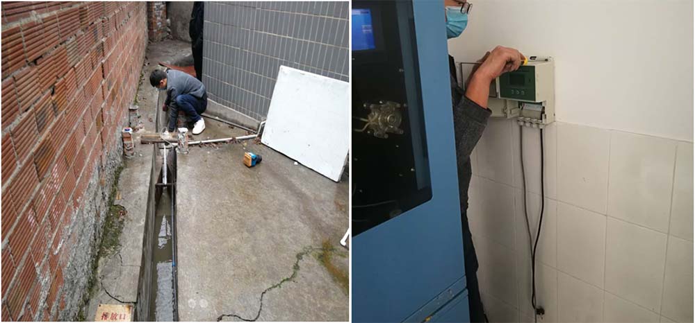 施工現場,客戶反饋流量計量不準確,并且每天的波動比較大,每月進出水量數據不準確,為解決客戶現場問題,技術人員做好防護為客戶現場勘察工況,竟發現原某