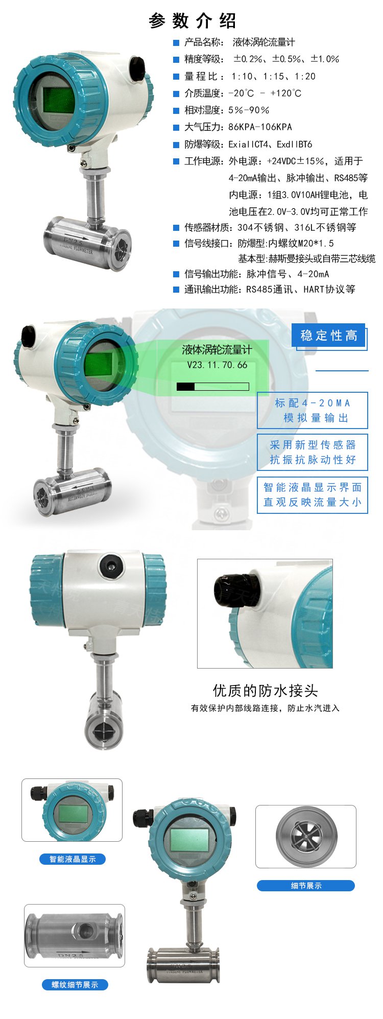 卡箍式液體渦輪流量計,安裝維護方便快捷。精度高,重復性好,壽命長操作簡單等特點。
