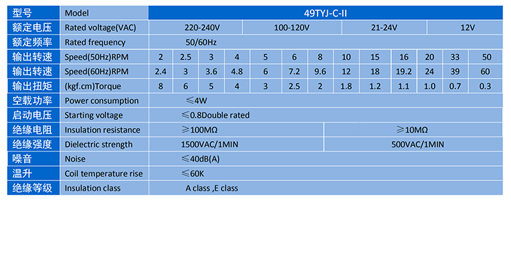 電機(jī)主要性能表 SPECIFICATION